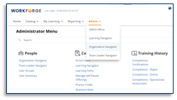 - Team admins can navigate to the Organization Navigator by hovering over the Administrator Menu and clicking Organization Navigator.