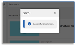 Note: If no offerings or learning paths appear, the Self-Enrollment targeting method has not been configured. - Click Enroll.